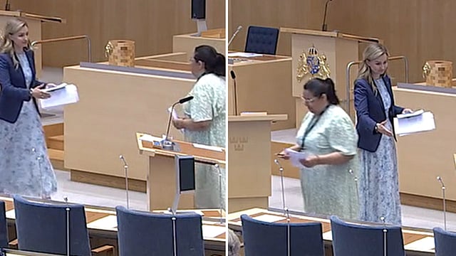 Idag utspelades en giftig ordväxling mellan energi- och näringsminister Ebba Busch (KD) och skandalomsusade Lorena Delgado Varas (V). Delgado Varas har nyligen anklagats för antisemitiska utspel, vilket fick Busch att ta avstånd från henne i inledningen av en interpellationsdebatt som handlade om gruvbrytning. Delgado Varas svarade med folkmordsanklagelser och vägrade skaka hand med ministern.