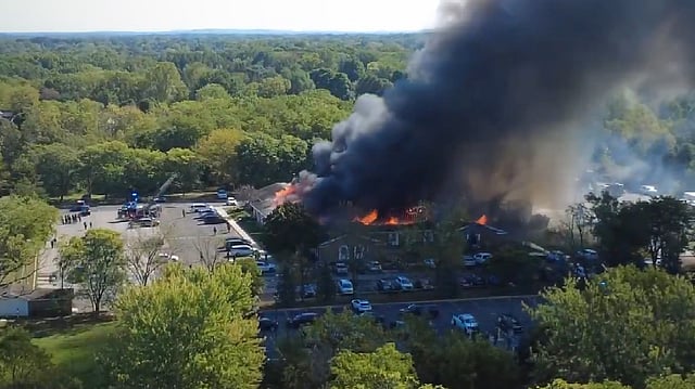 "Nya flygbilder visar kyrkan i Grand Blanc, Michigan, som står i lågor efter att en beväpnad man öppnat eld och tänt på den", skriver Benny Johnson på X.