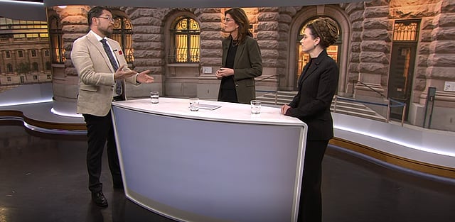 SD-ledaren Jimmie Åkesson förklarar åtgärderna i en debatt med Miljöpartiets språkrör Amanda Lind i SVT:s Aktuellt: