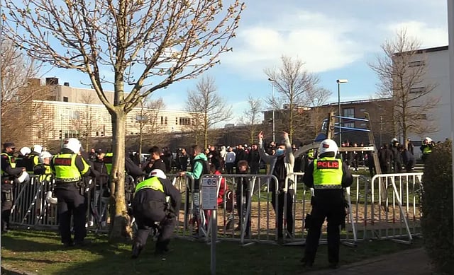 Fem män har dömts till fängelse för våldsamt sabotage mot polisens blåljusverksamhet under en demonstration i Malmö där den dansk-svenske politikern Rasmus Paludan höll tal våren 2022, rapporterar tidningen Samnytt. Demonstrationen urartade till våldsamma kravaller, och domen fälldes under måndagen.