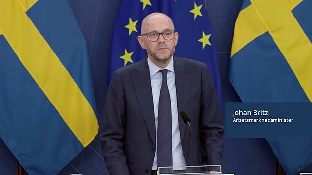 – Sommarjobb är en viktig insats för att unga ska förstå hur det är att vara på en arbetsplats, säger arbetsmarknadsminister Johan Britz (L) vid regeringens pressträff.