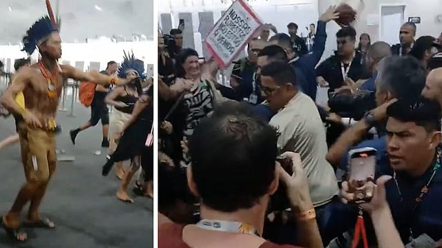 FN:s klimatmöte COP30 i Belém i Brasilien avbröts tillfälligt efter att ett femtiotal personer som benämner sig som urfolk tagit sig in på området och drabbat samman med säkerhetsvakter.
