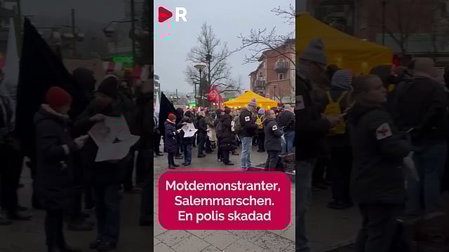 Polis och motdemonstranter har drabbat samman i Salem inför Salemmarschen som hålls på lördagen för första gången på 15 år. En polis har skadats lindrigt och tumult har uppstått efter att maskerade motdemonstranter försökt bryta igenom avspärrningar.
