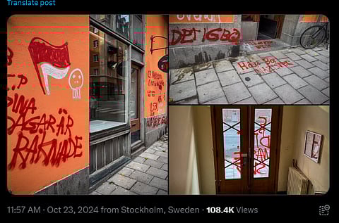 Petersons bostad vandaliserades efter att han återvänt från en rapportering om palestinaaktivismen i Göteborg. Hotfulla meddelanden, inklusive "Dina dagar är räknade", sprayades på hans fasad tillsammans med symboler som en dödskalle. Området runt hans bostad klottrades ner med påståenden om att han har kopplingar till nazism och pedofili.