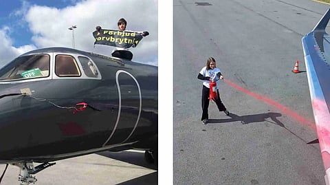 Två personer har gripits av polisen på Bromma flygplats efter att olovligen ha tagit sig in på området och klottrat på ett flygplan. Gärningsmännen kommer från klimataktivistgruppen Återställ Våtmarker.